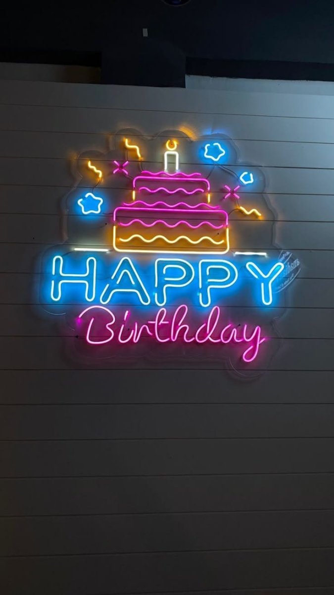 Apni shop ya brand ko attractive aur premium look dene ke liye custom neon light signage best option hai. Bright LED neon lights se bana hua yeh sign board door se hi logon ka attention grab karta hai.